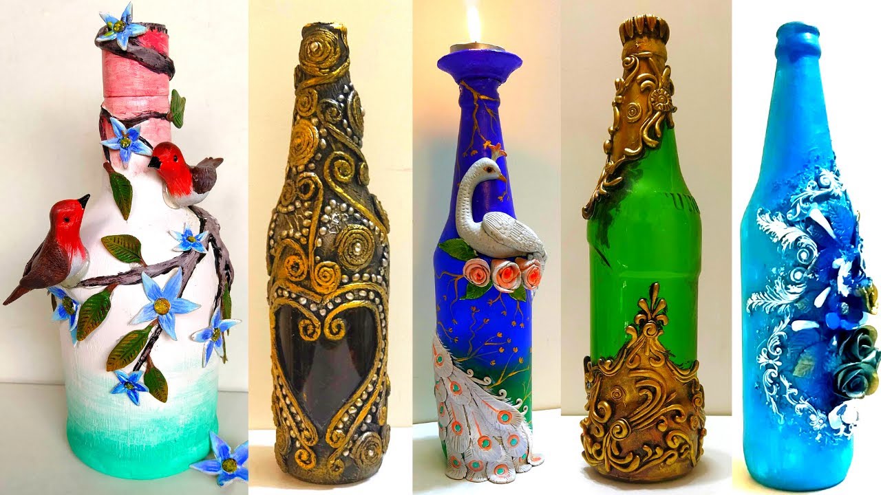 6 Simple Bottle Decor Ideas Bottle Art Air Dry Clay Ideas Youtube